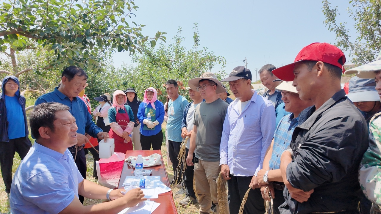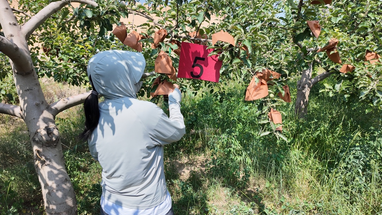 此外,活动邀请了沙坡头区农技推广中心专家担任裁判,全程跟踪评分,并以“理论+实操”的方式进行现场指导,开展“田间课堂”。专家针对套袋防虫要点、压枝角度与光照关系、疏果留果标准等关键技术进行实操演示,惠及果农60余人,有效提升了他们的苹果种植技能。经过激烈角逐,竞赛最终评选出“套袋能手”“压枝巧匠”“疏果标兵”各6名。