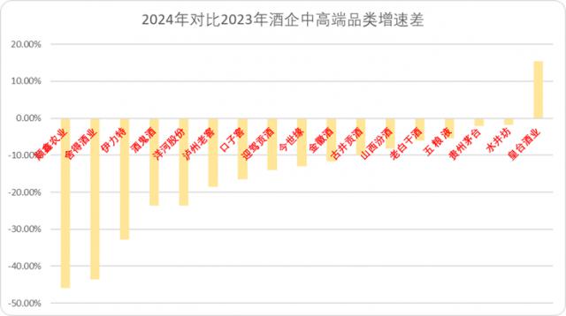 图:2024VS2023 酒企中高端品类增速差,来源:酒业家