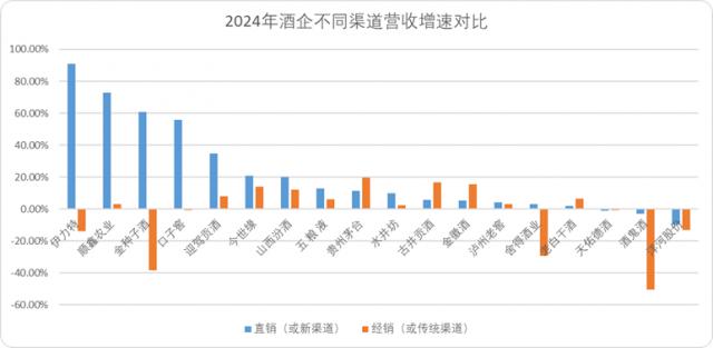 图:2024 酒企不同渠道营收增速对比,来源:企业财报
