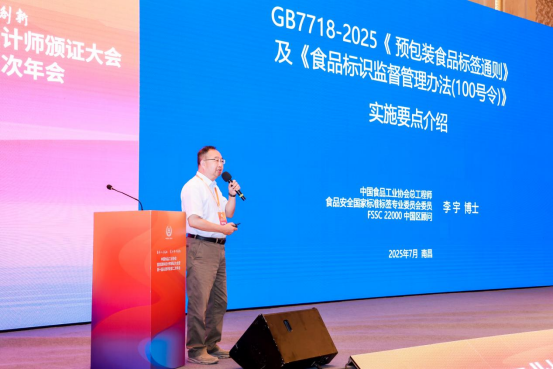 为强化行业自律与合规发展,大会组织开展GB7718-2025《食品安全国家标准预包装食品标签通则》及《食品标识监督管理办法(100号令)》宣贯培训,李宇总工程师对食品标签标识法规标准的实施要点进行深入解读,为企业合规生产提供专业指导。