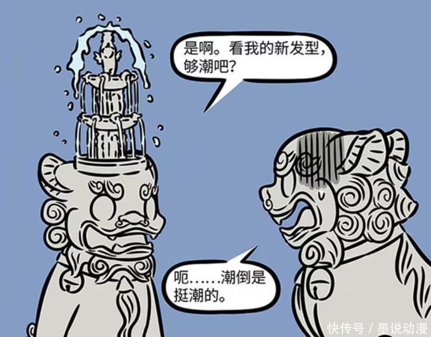 石狮子小刘心血来潮,想要改变下原本古朴的造型,所以来到女巫的理发店。女巫问了小刘,潮一点没有问题吗?小刘表示没问题,这就有了喷泉造型的发型。同事看到小刘这个样子同翔网,那是一脸吃惊。对于观众来说,小刘有着天马行空的想象力,行动力也很强,所以已经见怪不怪。