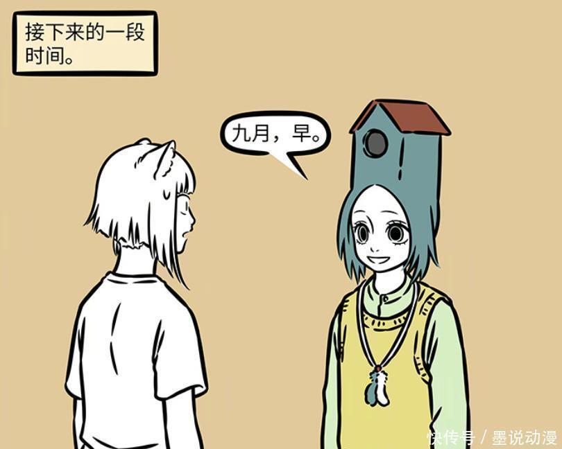 又过一天时间,精卫又找女巫换了个发型,这一次明显变成房子。可能这样的发型能够住下更多的孩子,只是九月觉得有点吃惊。不过精卫对自己头发的改造仍旧没有停下,就像换房子一样,越换越大。