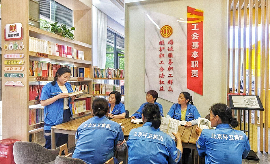 记者现场了解到,劳动者大本营驿站书屋有文学类、历史类、时政类、哲学类、科普类、社会类、法律类、诗歌散文类、心理健康类、育儿成长类等多个领域书籍,满足不同阅读需求,激发阅读兴趣。环卫工人们挑选自己喜欢的书籍进行阅读,沉浸在知识的海洋中,或独自阅读,或相互讨论,现场氛围热烈温馨。