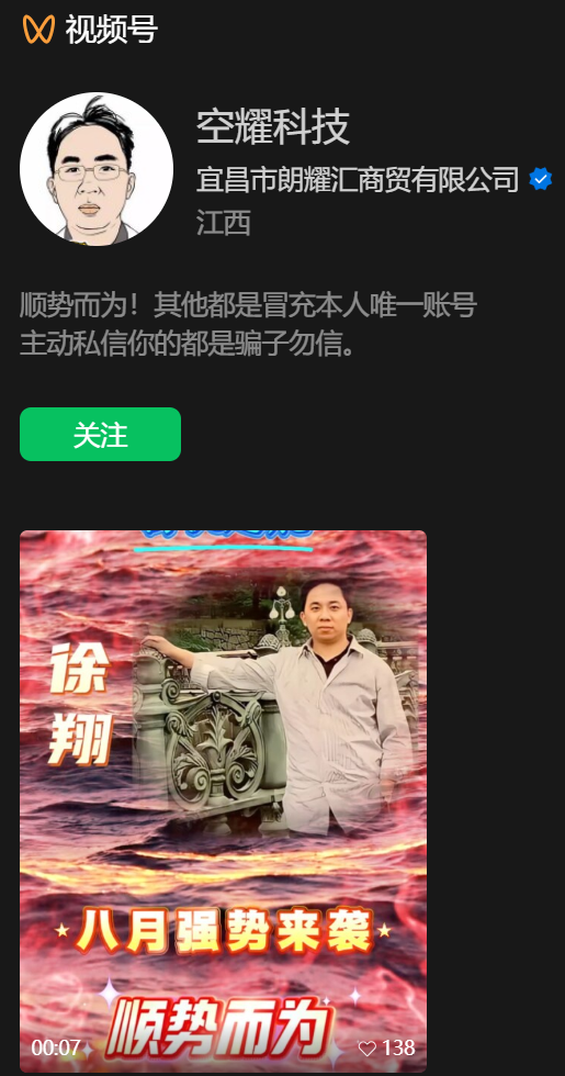 近日,21世纪经济报道记者发现,多个自媒体账号发布AI生成的徐翔视频,配文“徐翔总舵主8月回归”等相关表述,疑似借徐翔之名开展非法荐股活动。这些自媒体的包装模式高度统一,名称、头像、简介等都紧扣徐翔,但又明显“聪明”地规避了违禁词,不仅声称是徐翔本人唯一账号,还提前开启了直播预告,为后续直播荐股做准备。